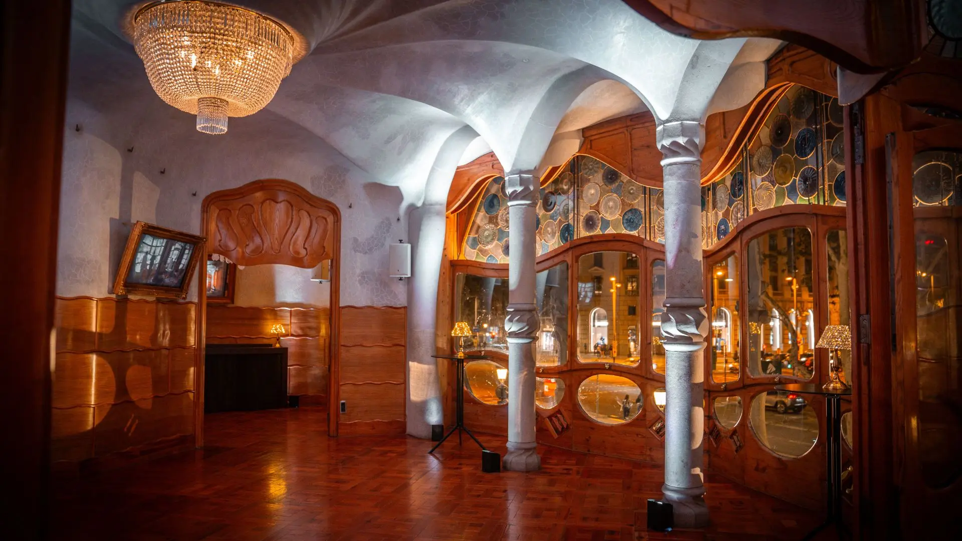 A surprising start to your visit: the entrance hall of Casa Batlló. The luxury and organic shapes prepare you for a magical architectural experience.